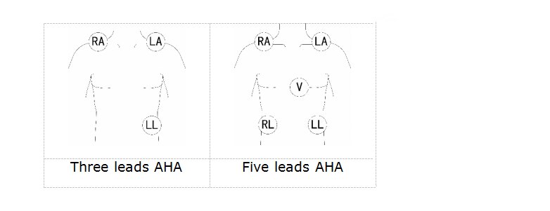 Typ připojení elektrody na lidském těle, jak je uvedeno níže