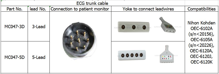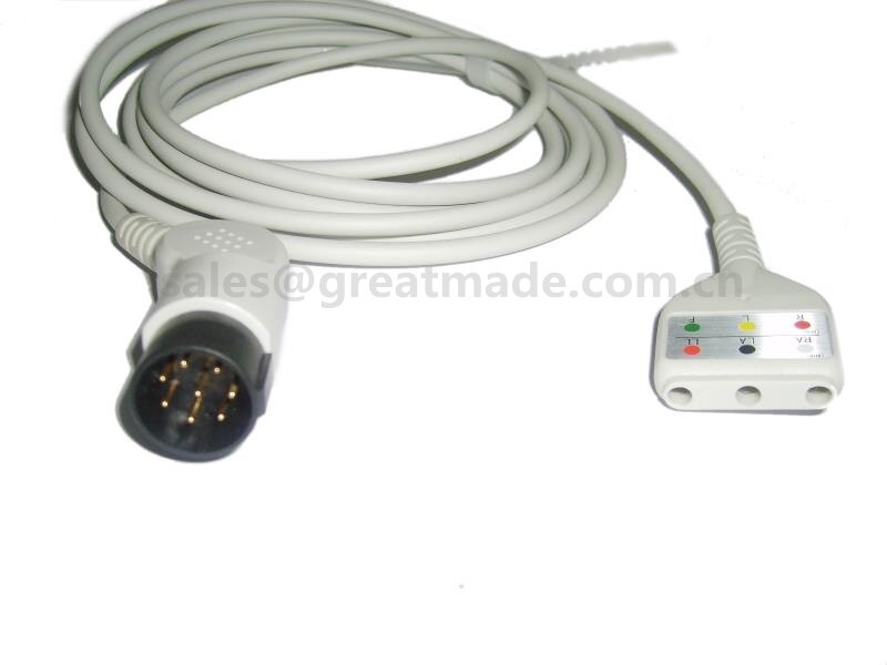 Kompatibilní kabel EKG Nihon Kohden, 8pin, Din Yoke, 3-vodičový , OEC-6102A